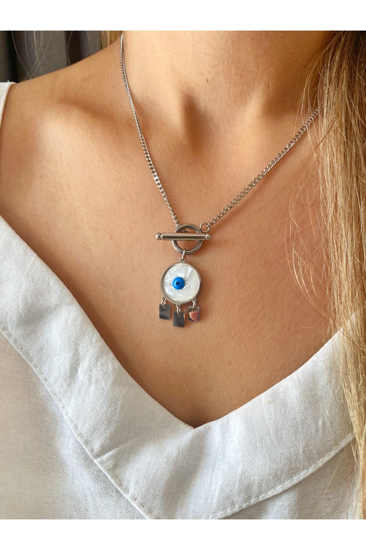 Nazar boncuklu çelik kolye